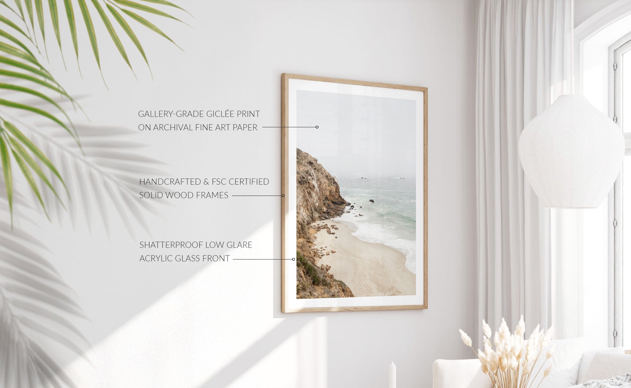 Our fine art prints are inspired by the quiet beauty of the natural world, from tranquil coastlines to open skies and sunlit deserts. Printed with care, each piece is designed to bring a peaceful, grounded atmosphere into your home. Perfect for bedrooms, meditation spaces, or modern living rooms, our wall art serves as a gentle reminder to slow down, breathe deeply, and reconnect, no matter where you are.