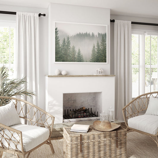 Muted tones and soft edges capture the quiet poetry of nature, misty mountains, still lakes, and timeless trees. These serene landscapes offer a sense of calm and spaciousness for any mindful home.