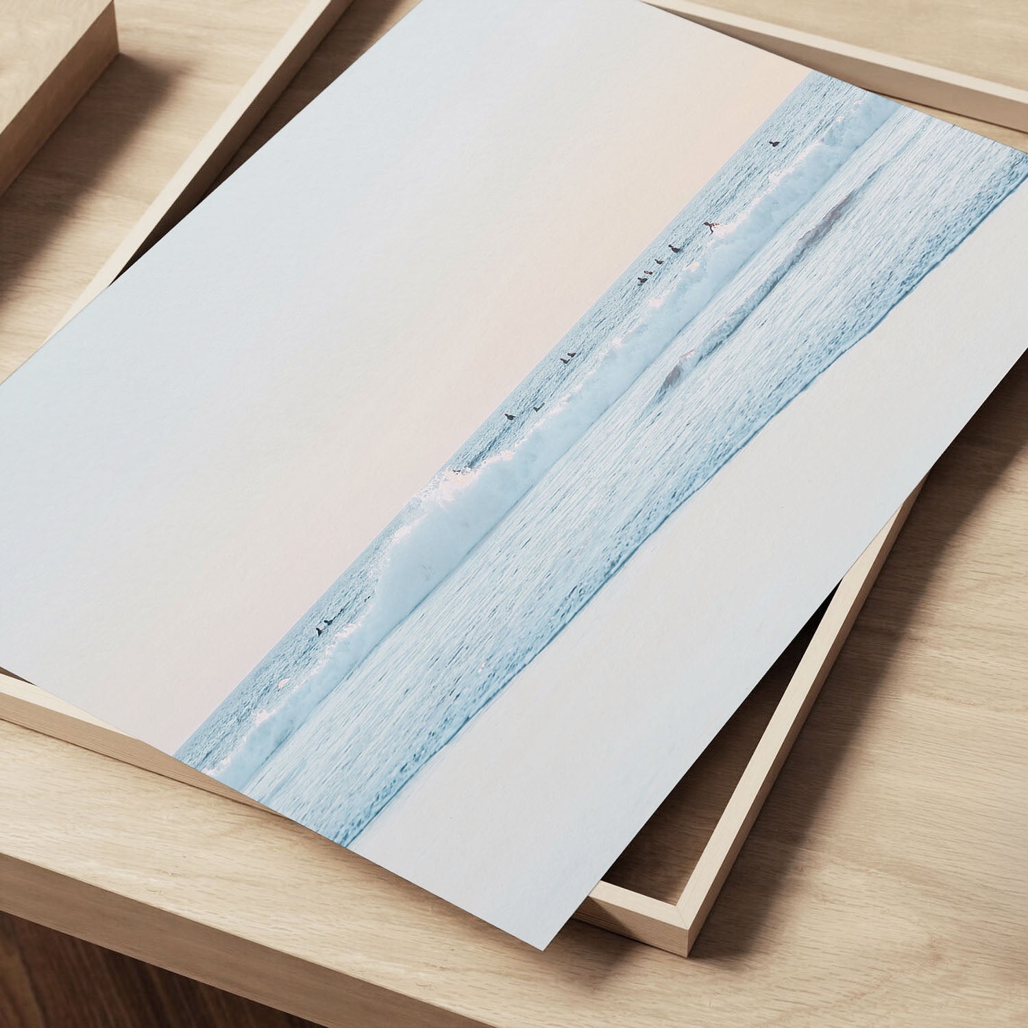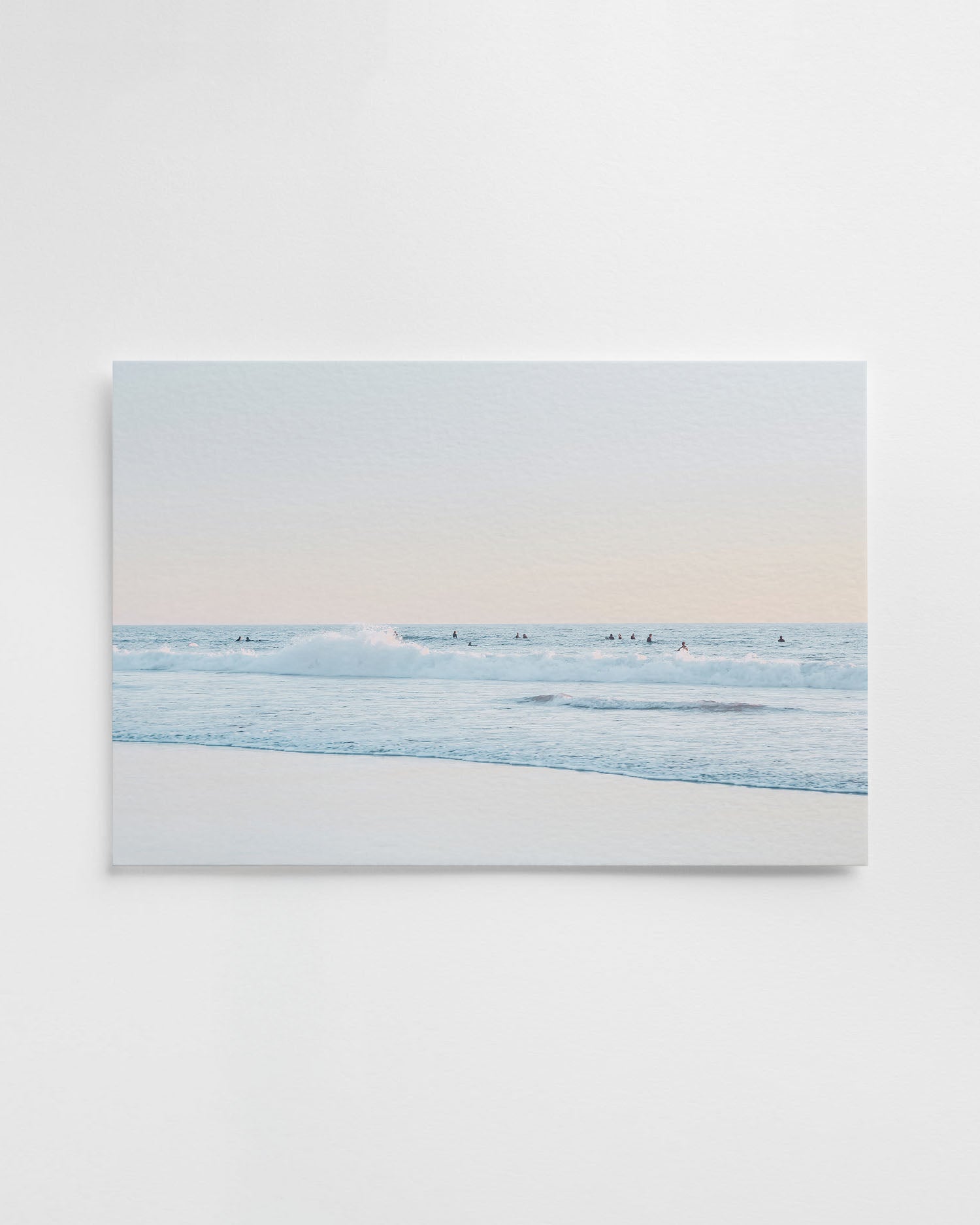 This California beach photography fine art print captures a peaceful surf scene where soft waves meet pastel skies, offering a timeless glimpse of coastal serenity. The gentle tones and balanced composition create a soothing rhythm that complements any modern or coastal-inspired space. Ideal for the living room, bedroom, entryway, or office.