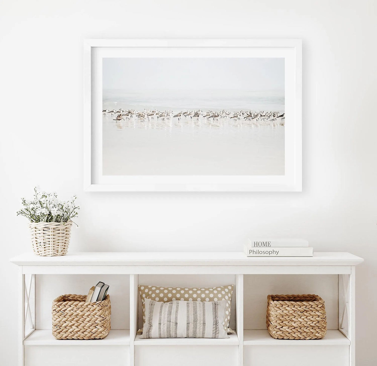 Sandpiper Flock On The Beach Coastal Wall Art Print