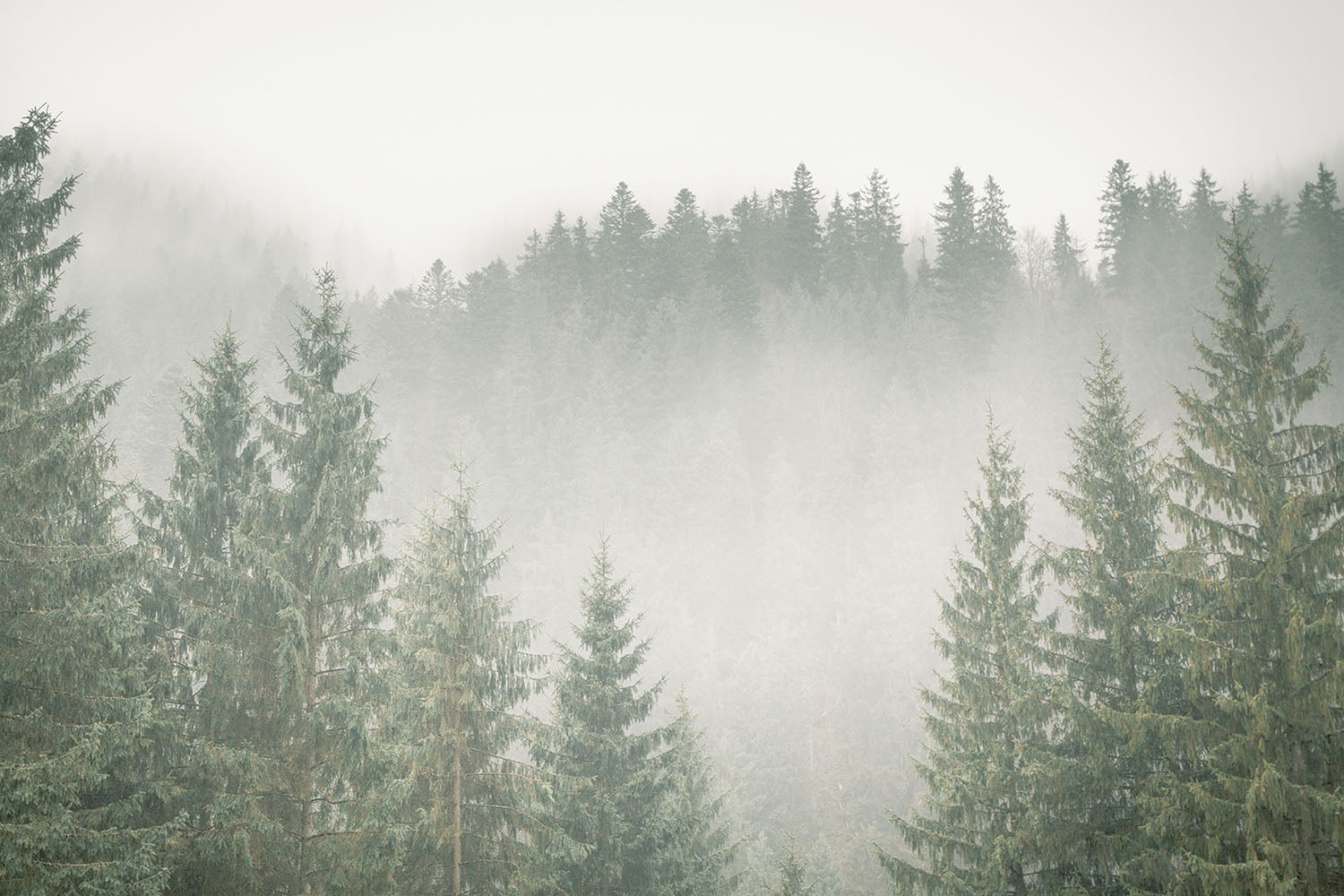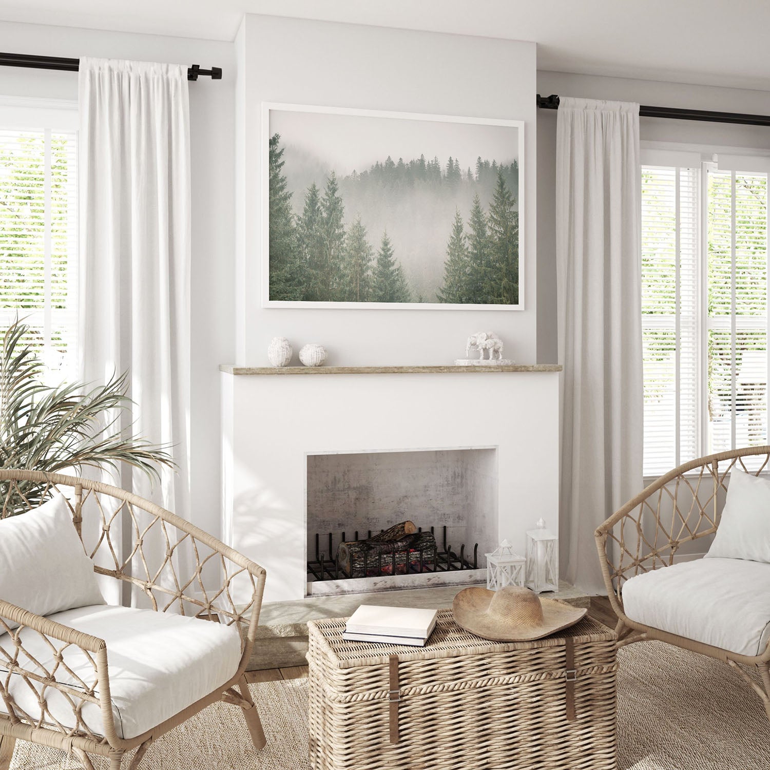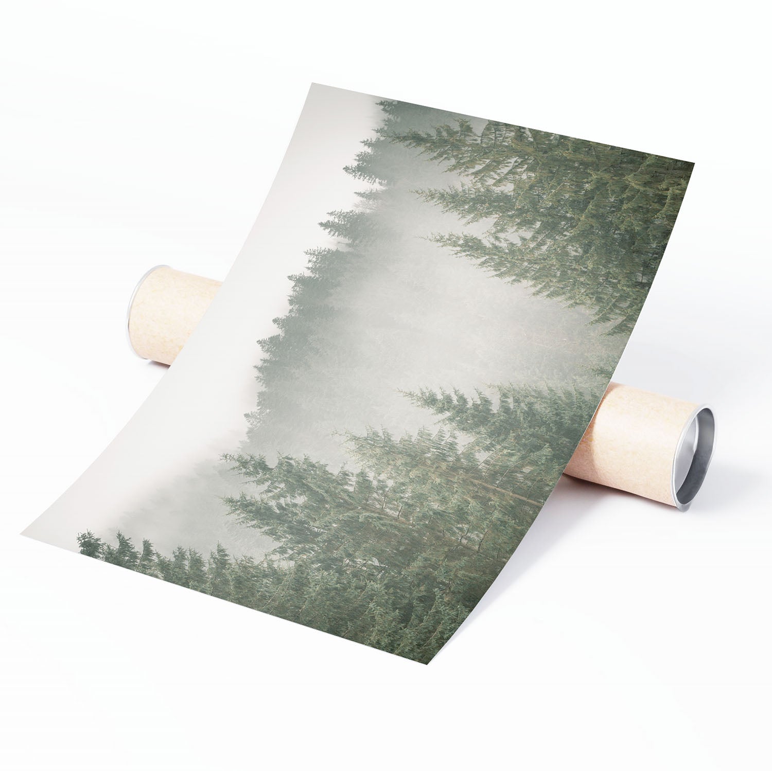 Foggy Evergreen Forest Wall Art Print in Soft Green Tones