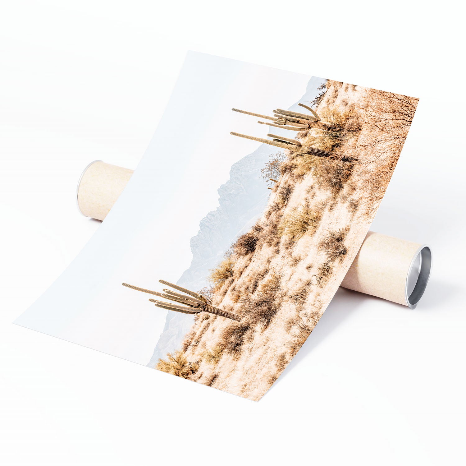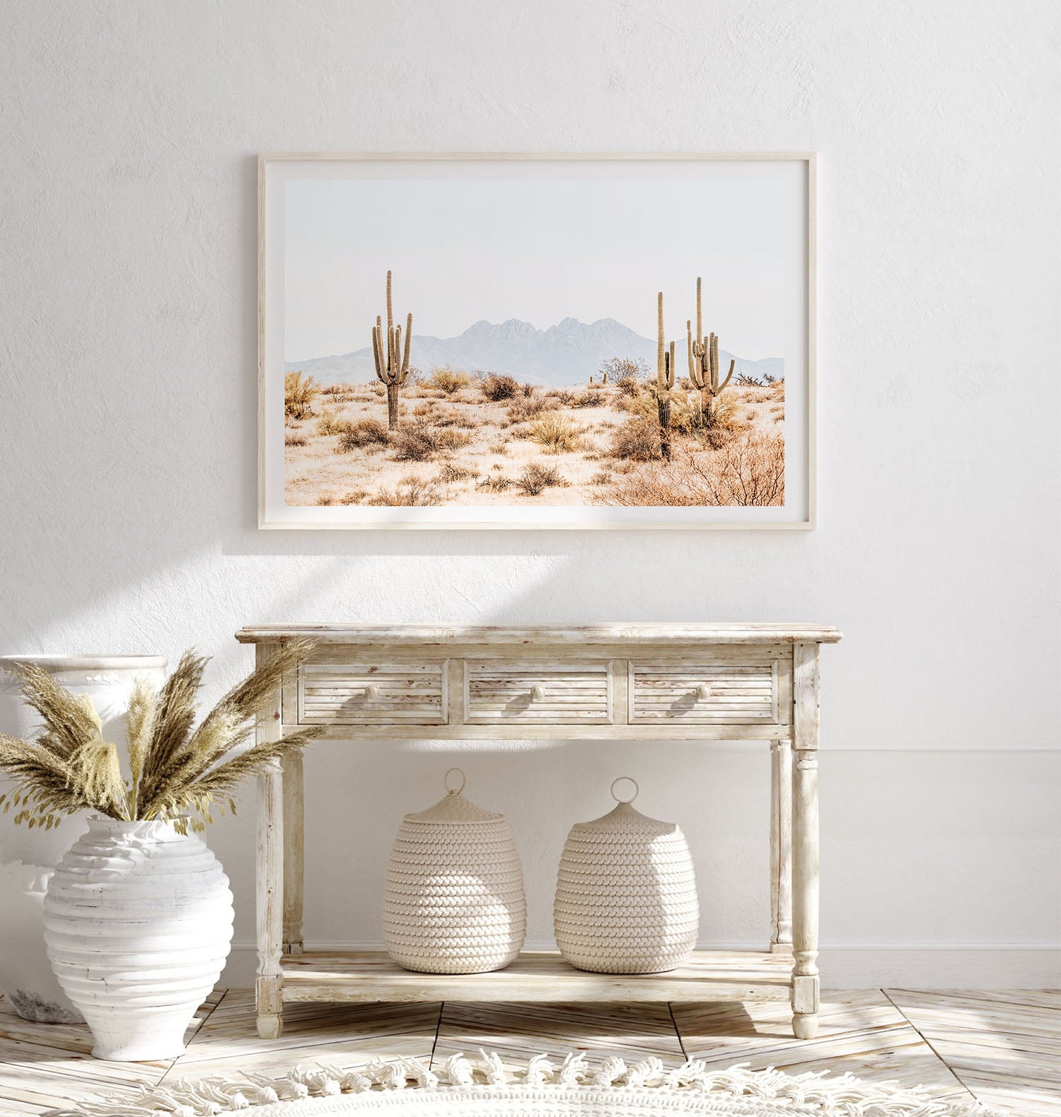 Four Peaks Arizona Neutral Desert Cactus Landscape Art Print
