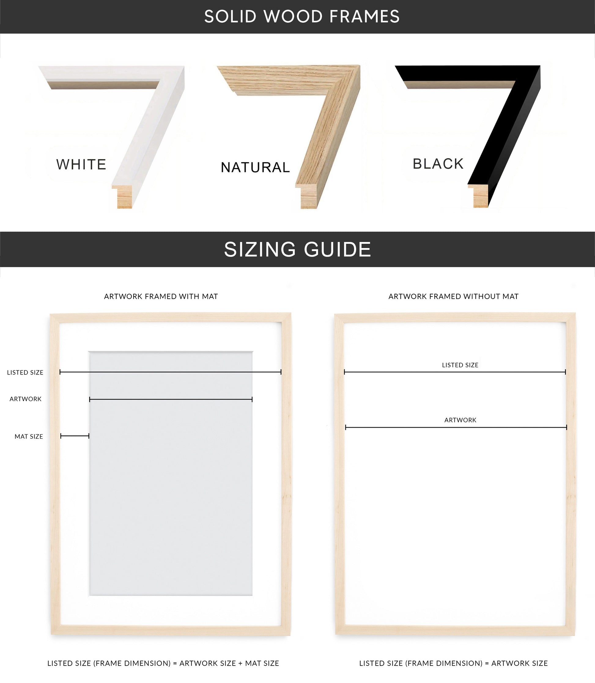 Our premium hardwood frames are expertly handcrafted from 100% natural, FSC-certified wood and are available in black, white, gold, and natural wood finish. CLICK HERE for more details.