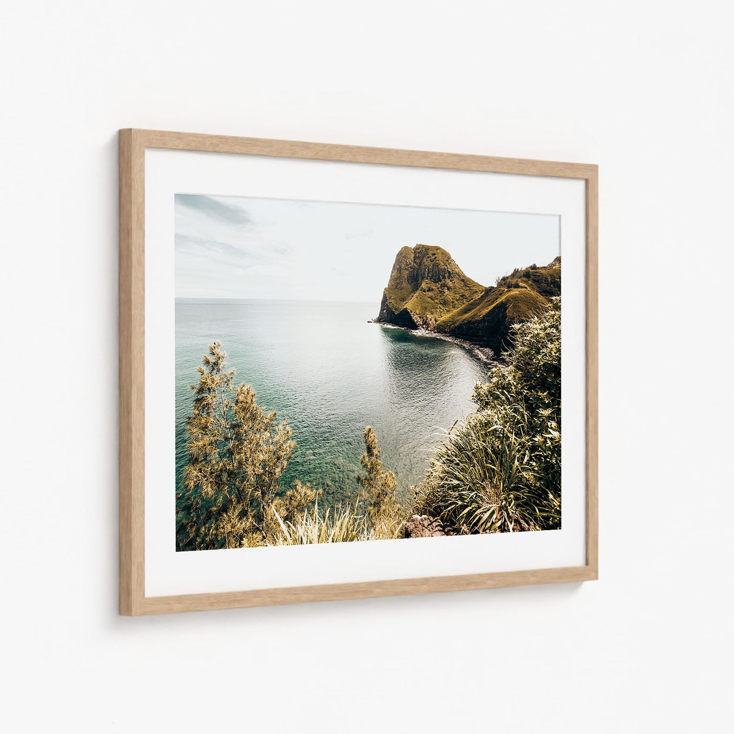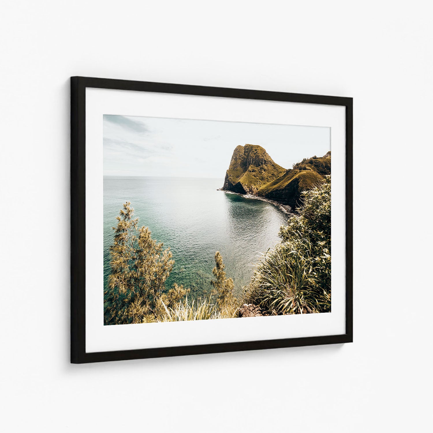 Hawaiian coastline with blue ocean waters and rocky shore fine art print.