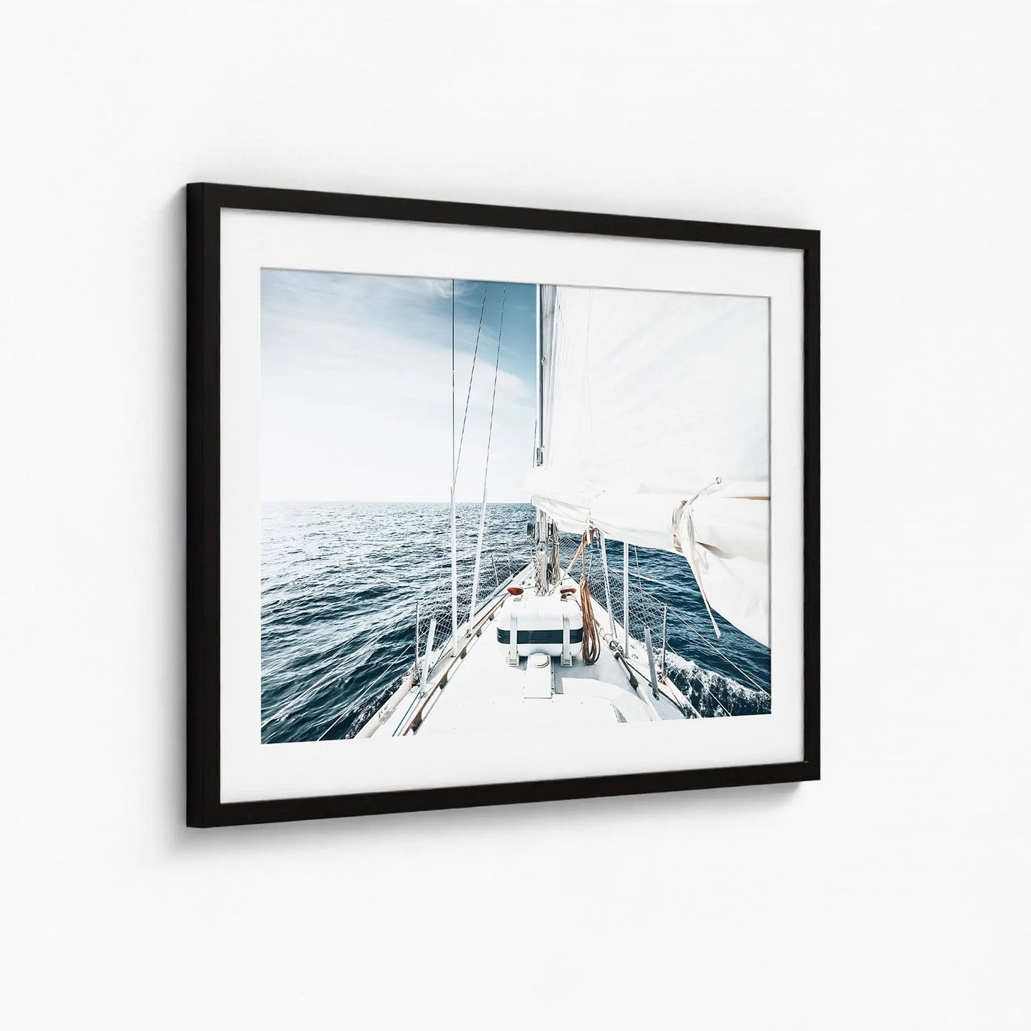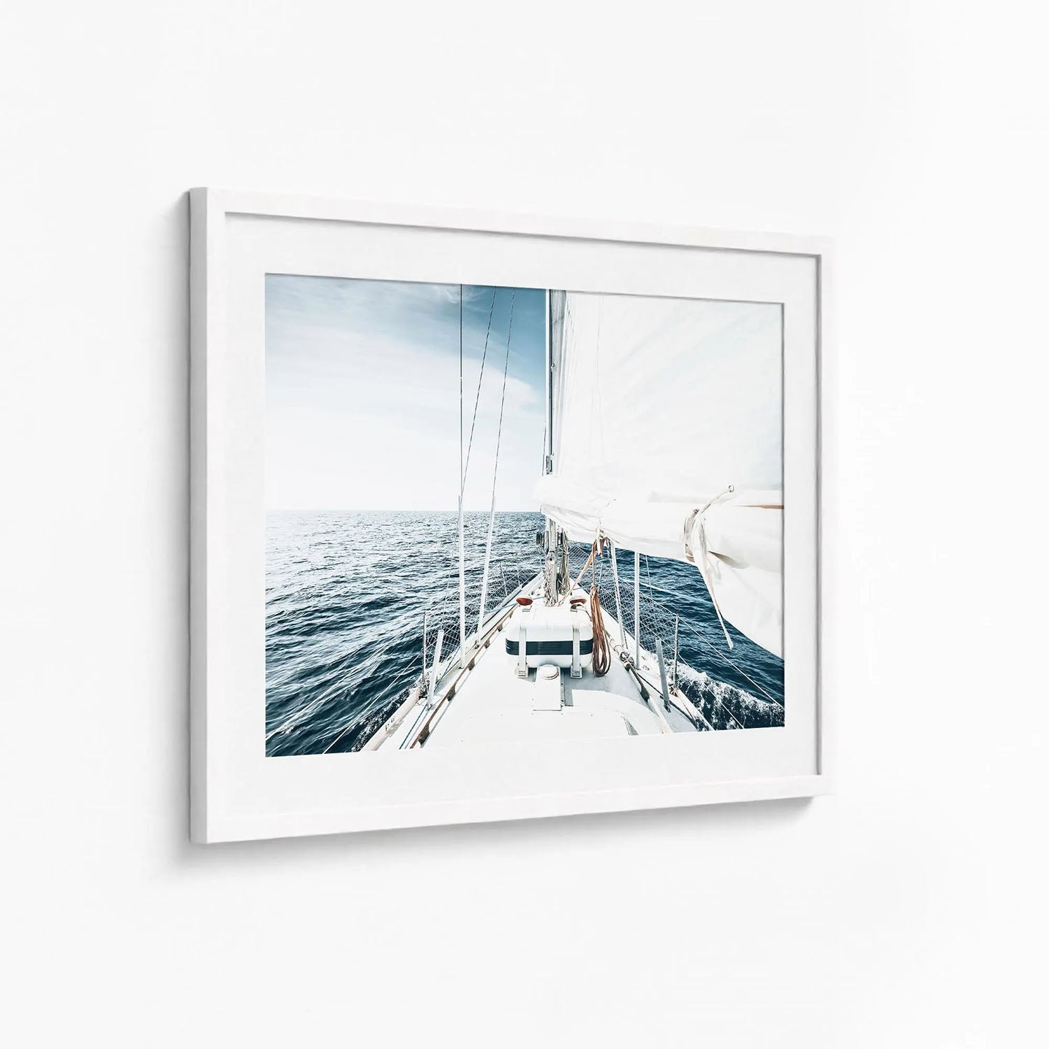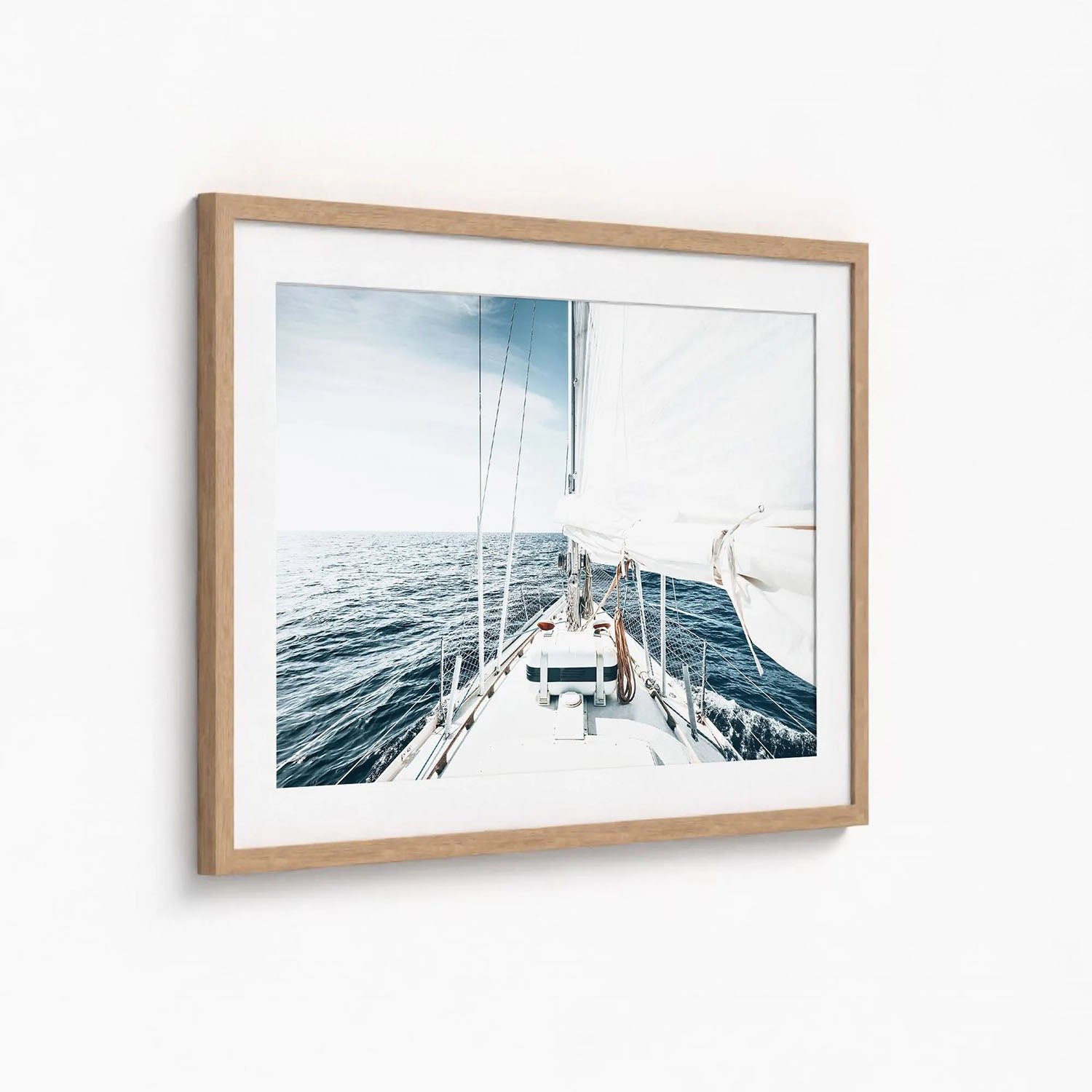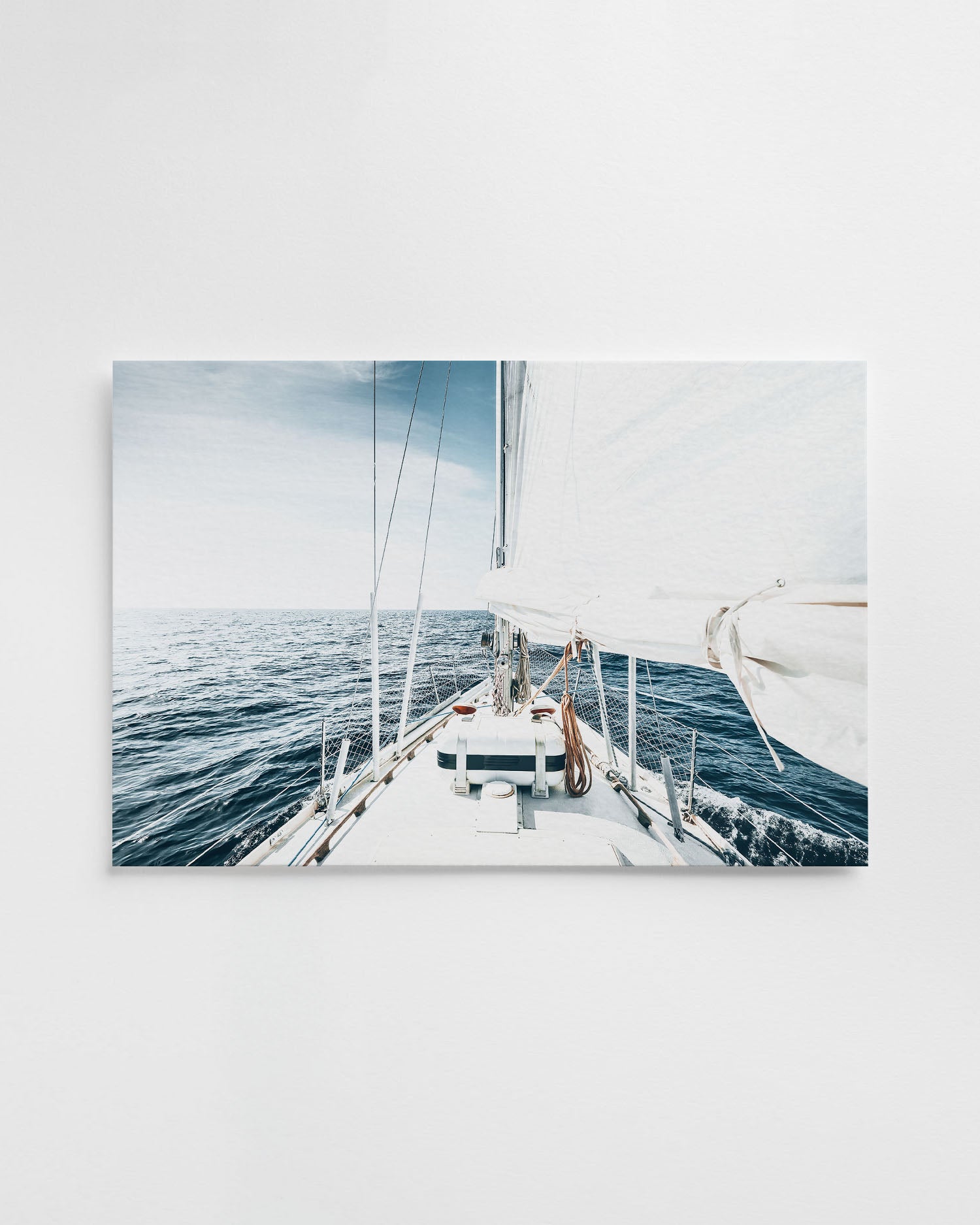 This sailboat wall art captures the elegance of a yacht gliding across calm waters, embodying the freedom and tranquility of life at sea. Photographed in soft natural light, the minimalist composition brings a sense of peace and openness to any room.
