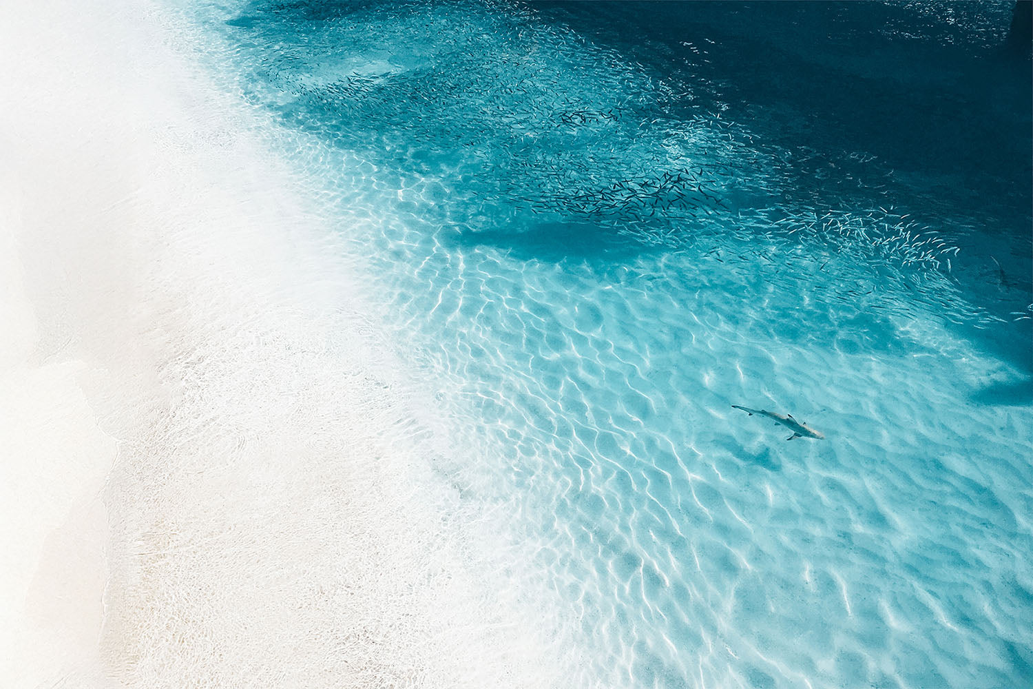 Aerial View Of Lone Shark Gliding Through Tranquil Tropical Waters