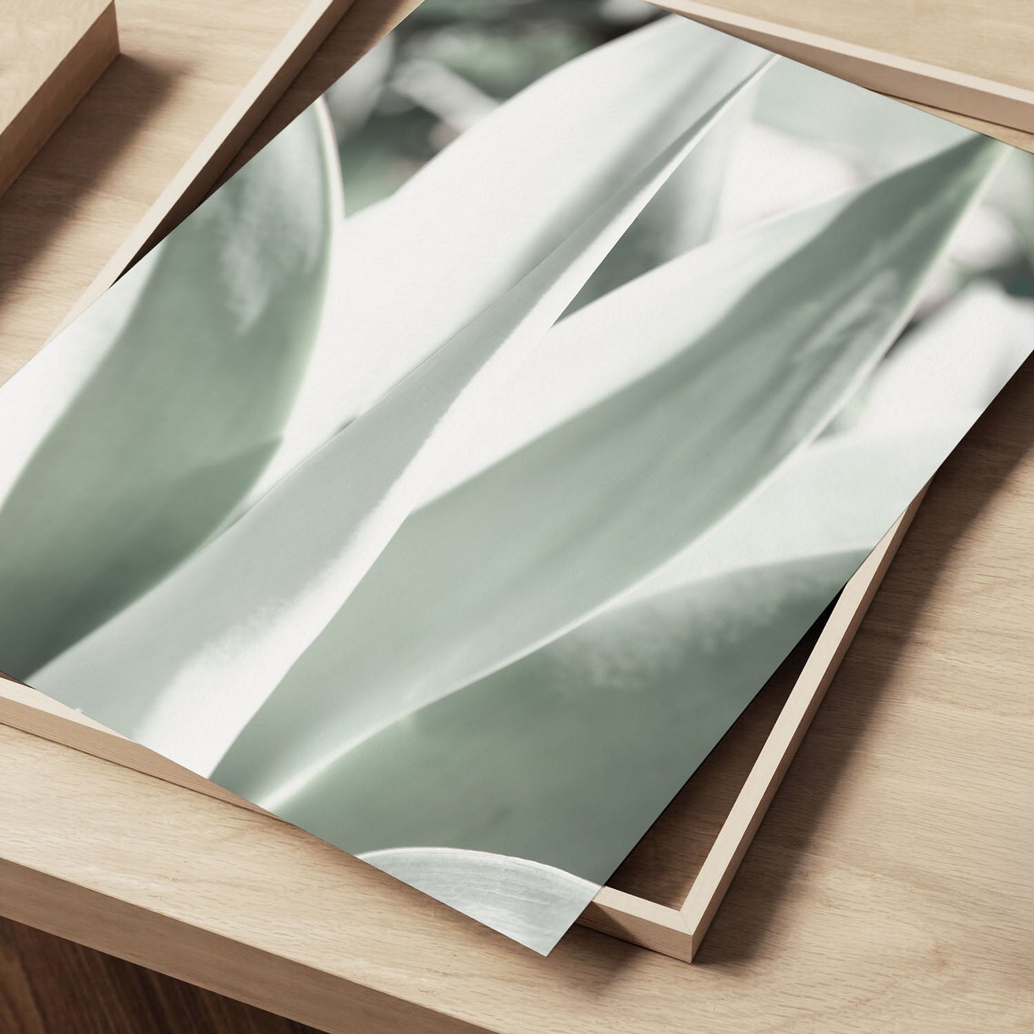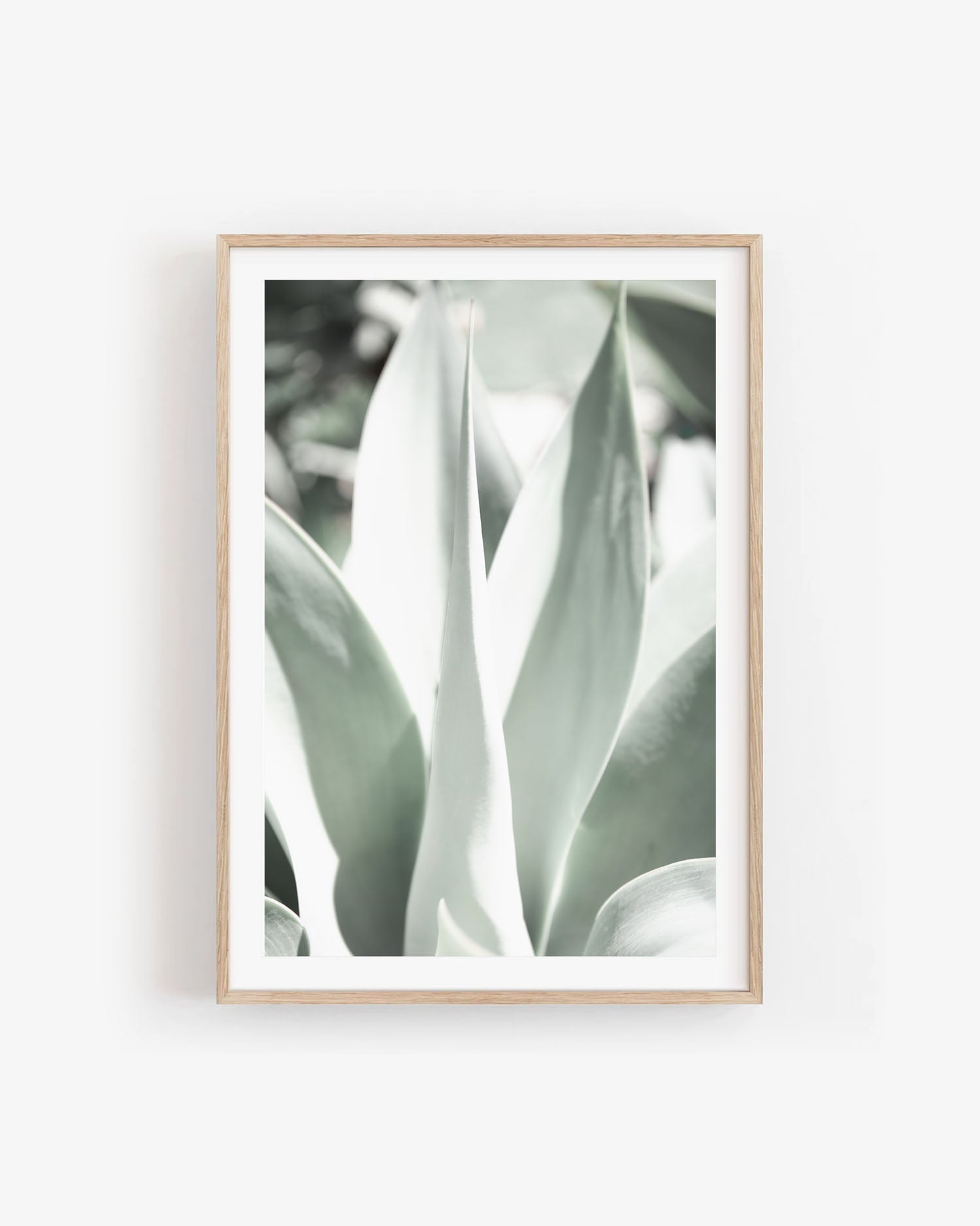 This agave wall art print showcases the intricate beauty of mint green agave leaves in a detailed close-up, bringing a fresh and calming energy to any space. The photograph highlights natural textures and soft gradients of green, creating a minimalist focal point for modern interiors.