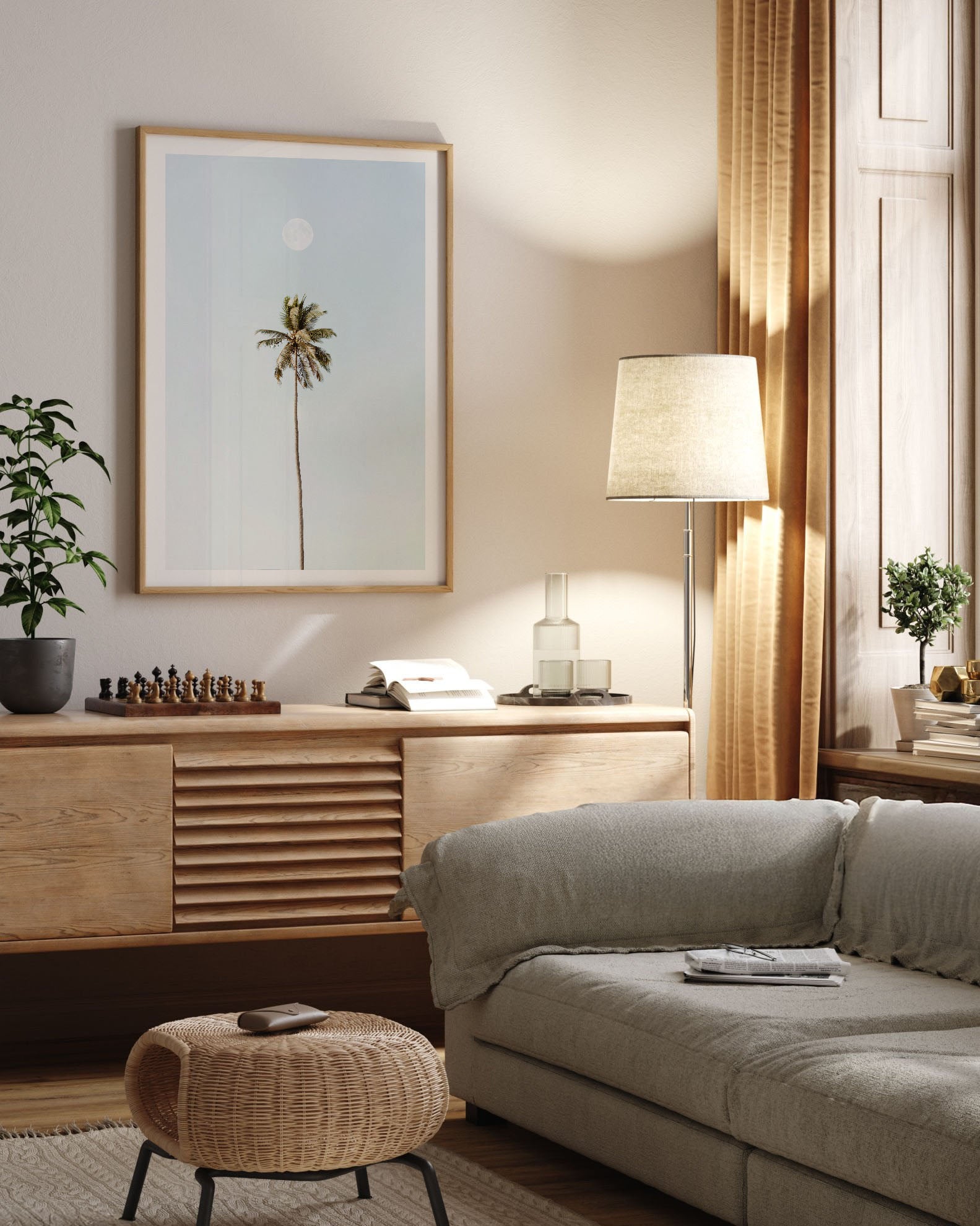 Natural Frame – Warm, light wood tones that bring a soft, organic feel to your room.