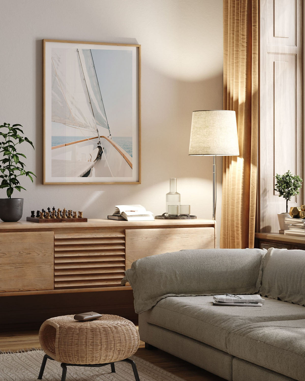 Natural Frame – Warm, light wood tones that bring a soft, organic feel to your room.