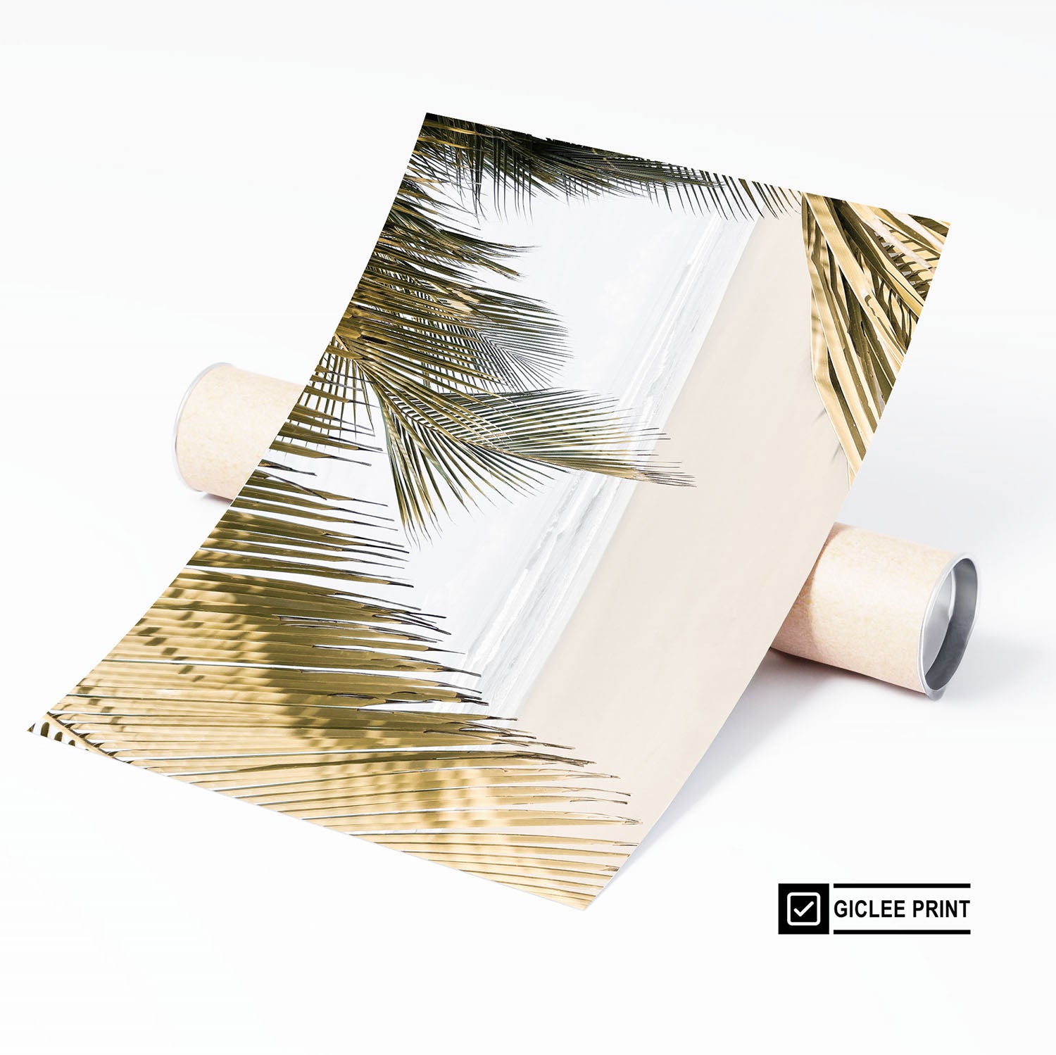 Sunlit Tropical Island Shoreline with Palm Leaf Fine Art Print