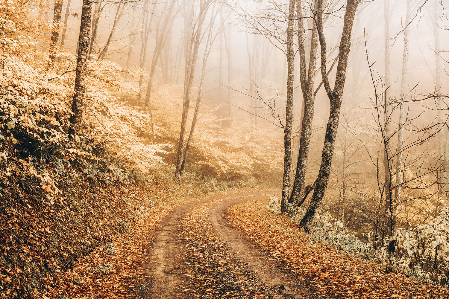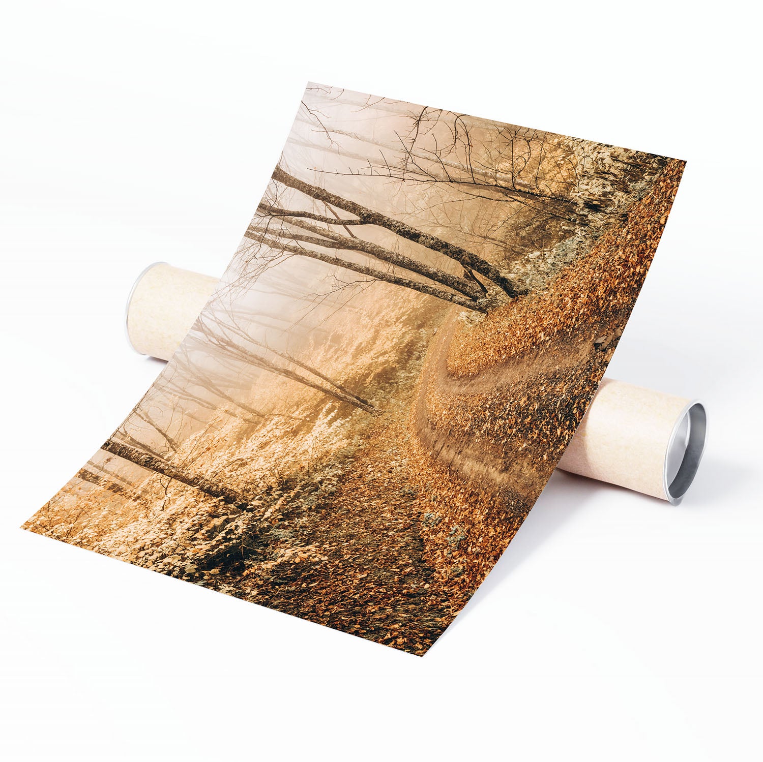 Fall Forest Path Wall Art Print with Golden Autumn Leaves