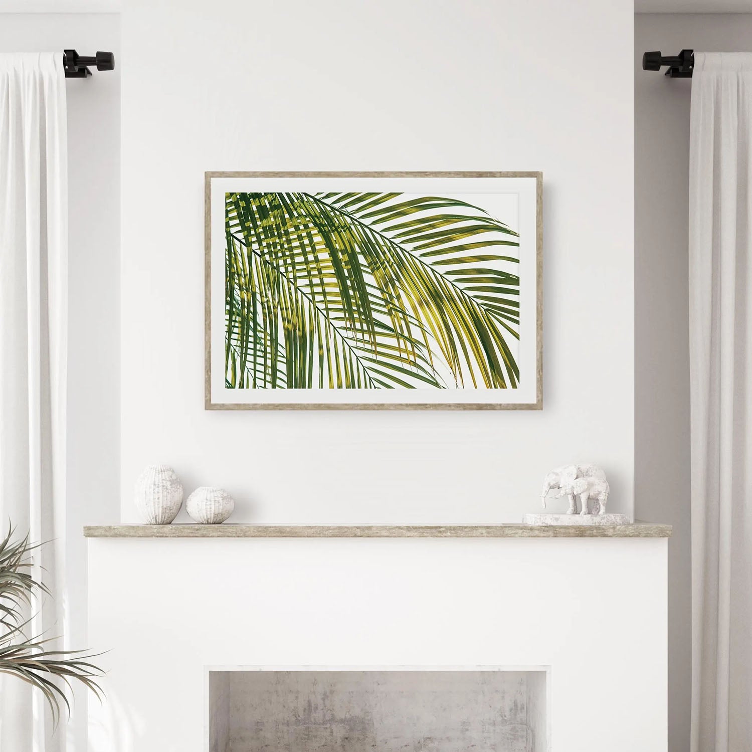 Sunlit Tropical Palm Leaves Fine Art Print In Soft Abstract Green Layers